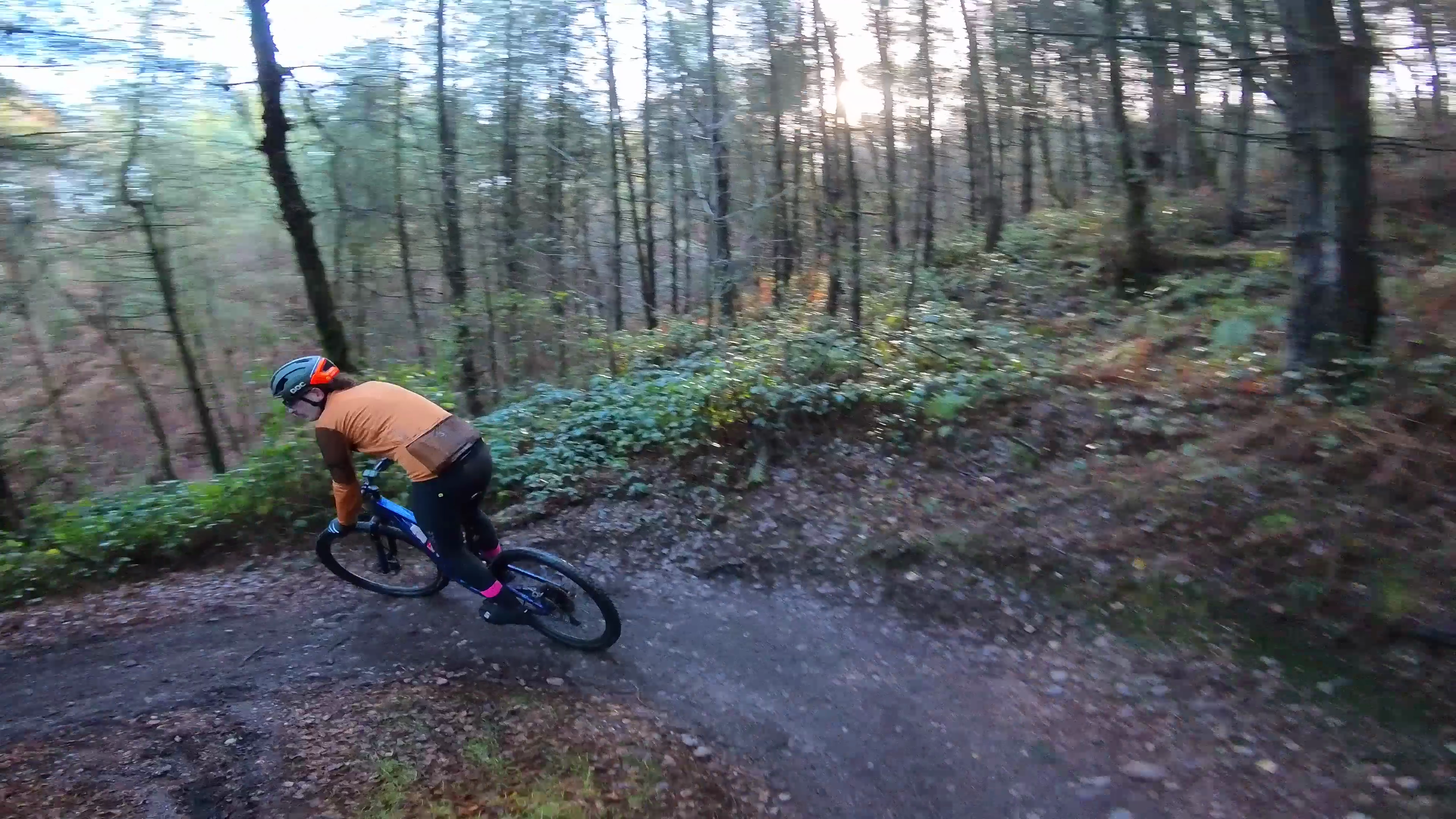 Some stills from the ride are below. The forest was lovely with the sun breaking through the trees. The trails were wet but rode very well